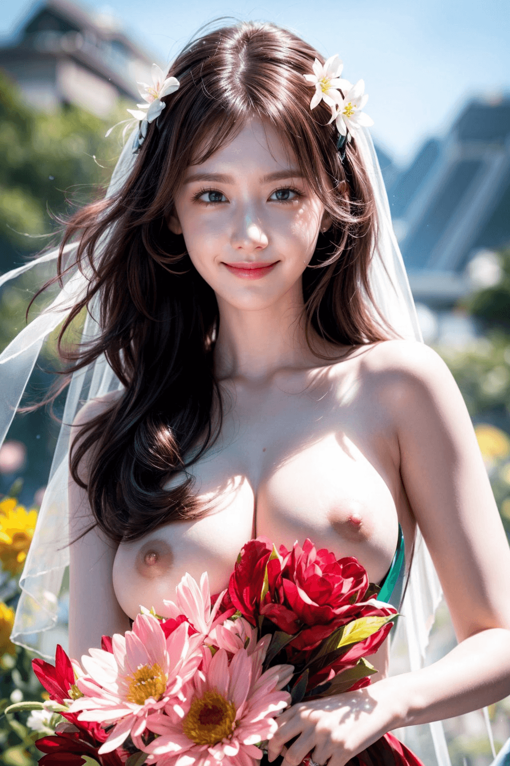 花嫁姿の全裸美女AI画像